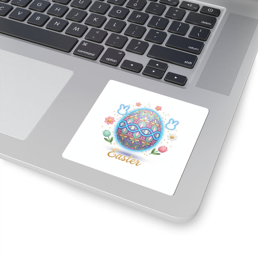Easter Decorative Egg Kiss-Cut Sticker – Pastel Bunny & Floral Design