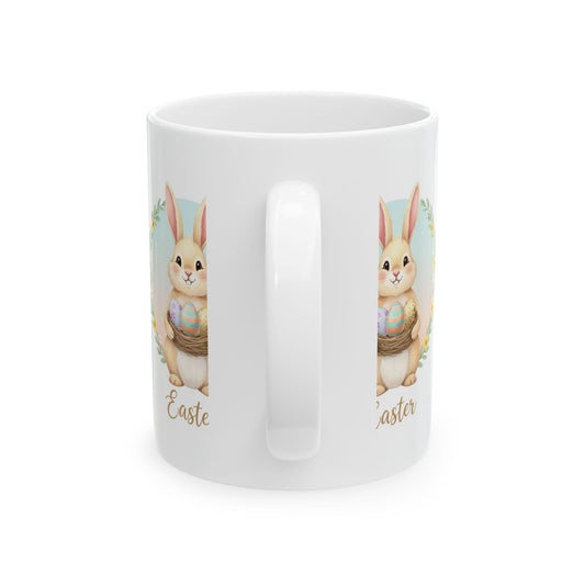 Easter Bunny Ceramic Mug - Cute Bunny Holding Easter Eggs (11oz & 15oz)