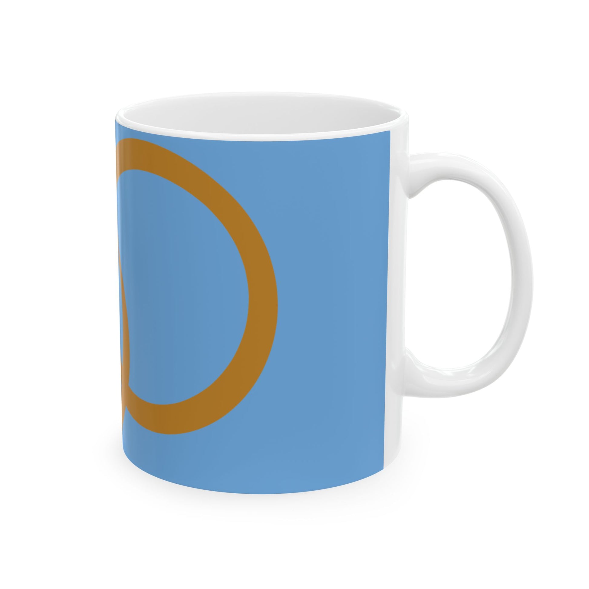 This glossy ceramic mug brings a calm, modern vibe to morning routines. A soft sky-blue wraparound background is interrupted by two warm ochre rings that overlap like gentle brushstrokes — simple, bold, and quietly artistic. The comfortable C-handle and shiny finish make every sip feel intentional, while vibrant printing ensures the colors stay crisp and alive through daily use. Available in two sizes, it moves easily from solo coffee moments to longer, lazy afternoons with tea. Lead- and BPA-free for peace of mind.