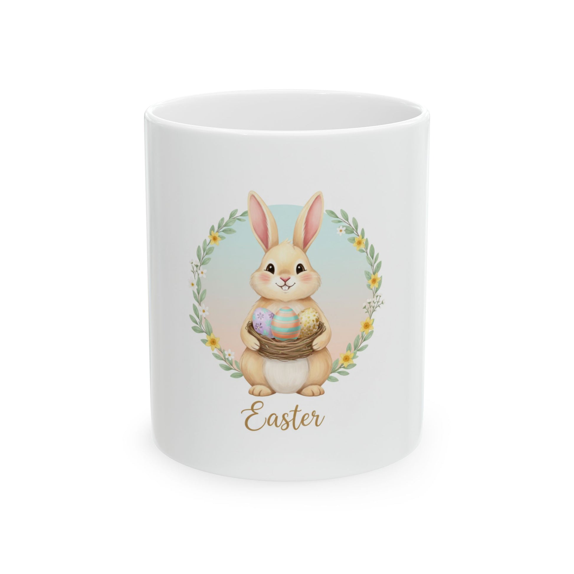 Easter Bunny Ceramic Mug - Cute Bunny Holding Easter Eggs (11oz & 15oz)