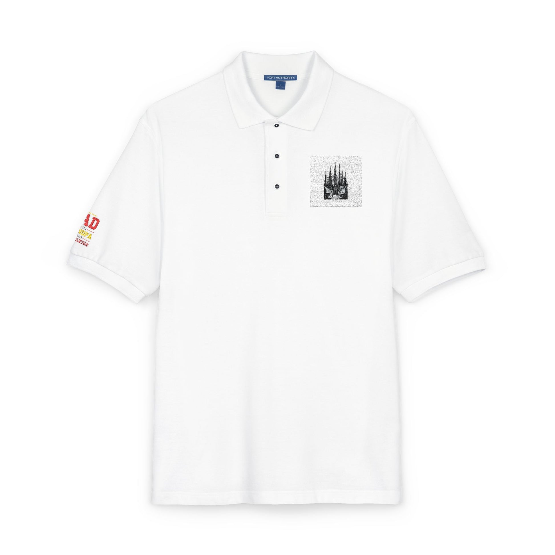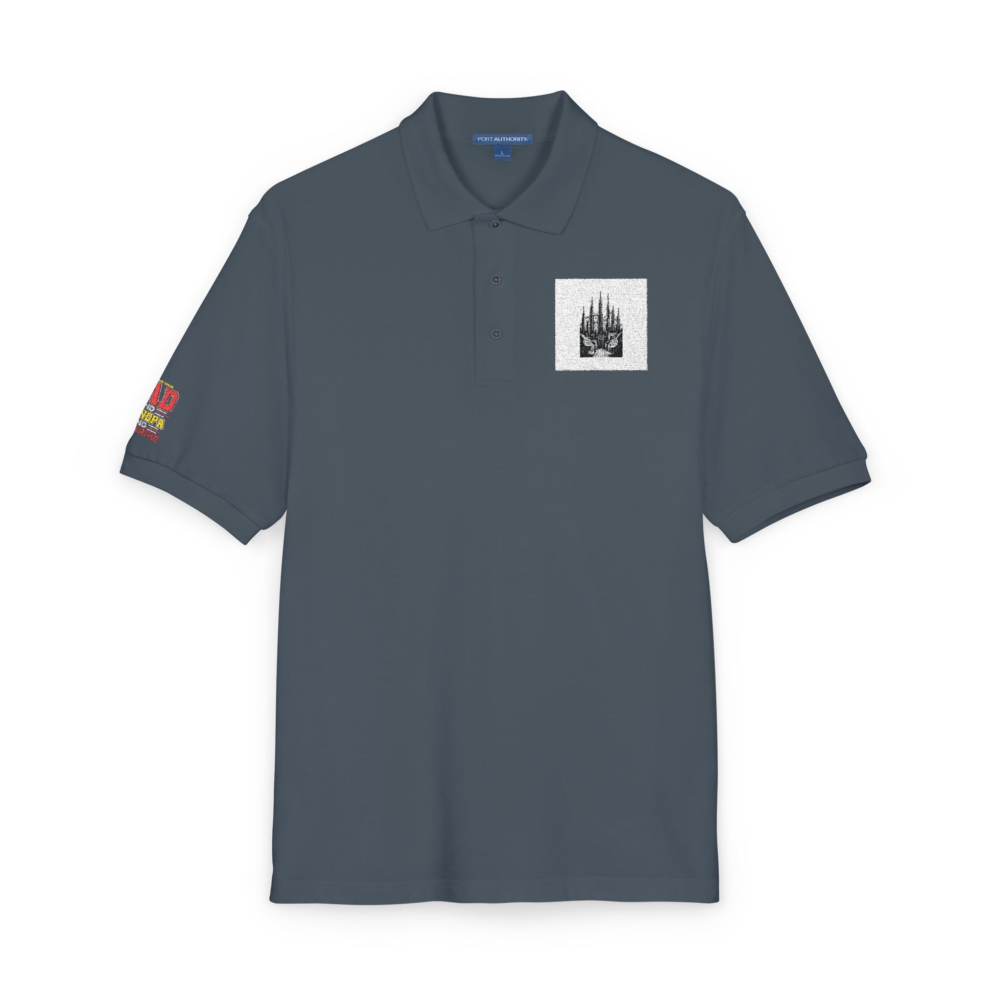 This relaxed-fit polo brings quiet confidence to casual days. Soft pique fabric with a muted, misty-gray tone carries a small, detailed embroidered illustration over the heart and a playful embroidered patch on the sleeve. The flat-knit collar and cuffs keep the silhouette clean while side vents and breathable 65/35 poly-cotton pique ensure easy movement and cool comfort. Metal buttons with dyed-to-match rims add a subtle, durable finish. Wear it layered under a jacket or solo for neighborhood walks, laidback office days, or low-key gatherings — it reads effortless and considered without shouting for attention.