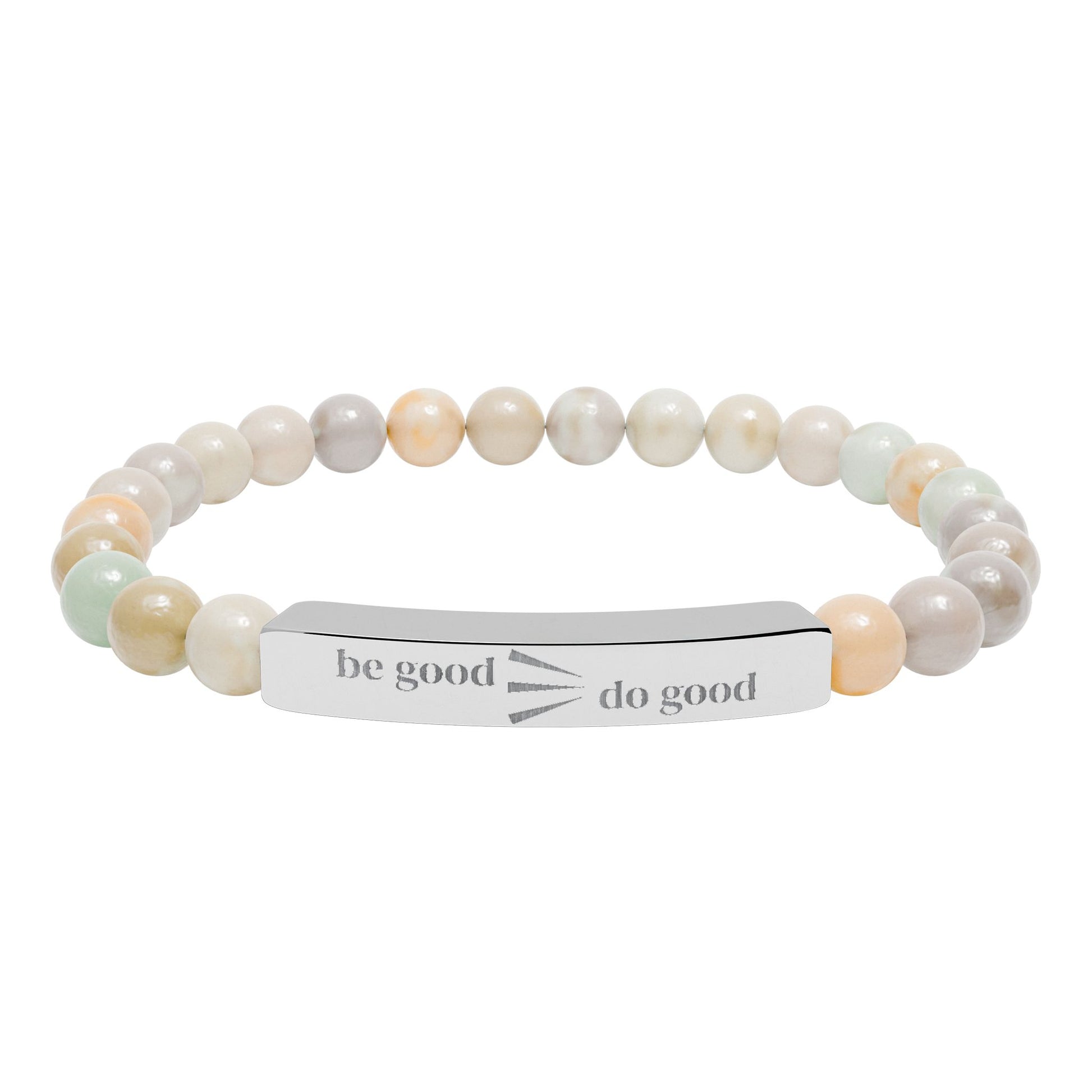 Soft, grounded, and quietly elegant — this stretch stone bracelet blends natural bead textures with a sleek engraved stainless steel bar. Each bead carries subtle, earthy tones that catch light without shouting. The engraved bar adds a modern, personal touch that won’t wear away, while the stretch design slips on comfortably for daily wear. It sits equally well layered with other pieces or alone as a small, mindful detail to the wrist.