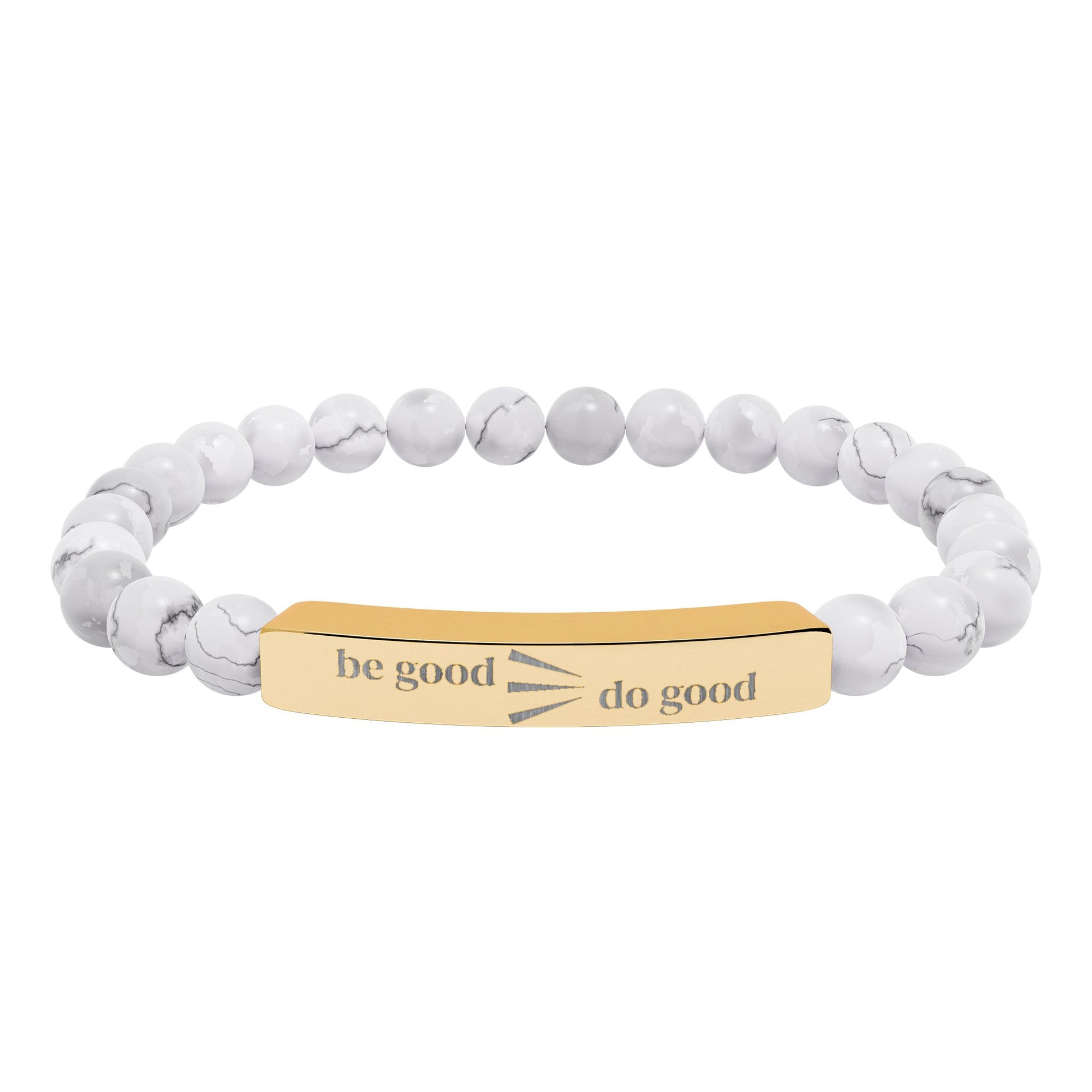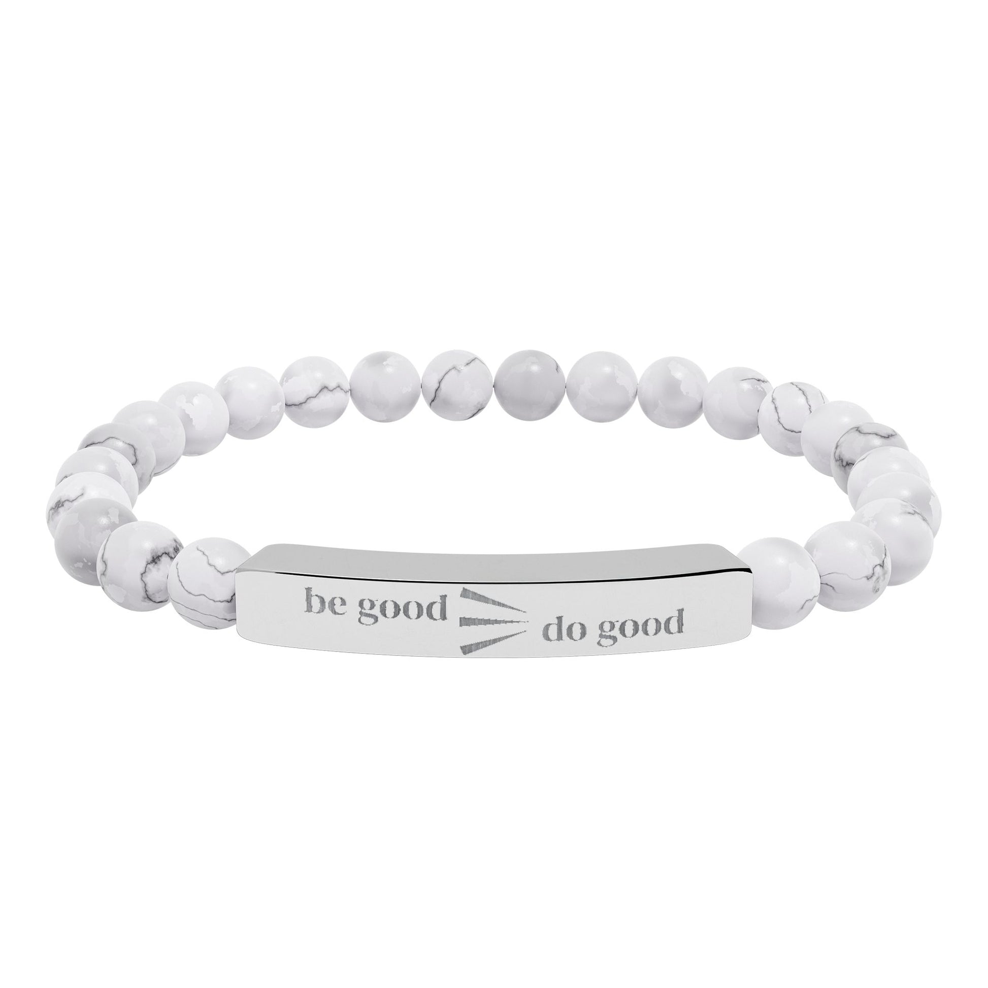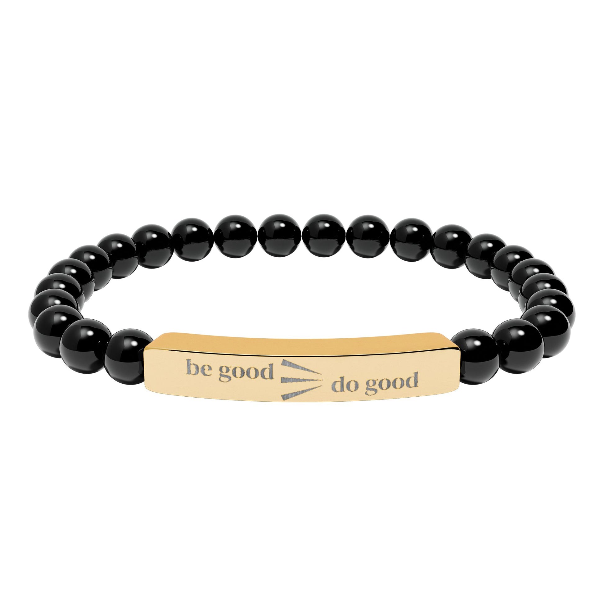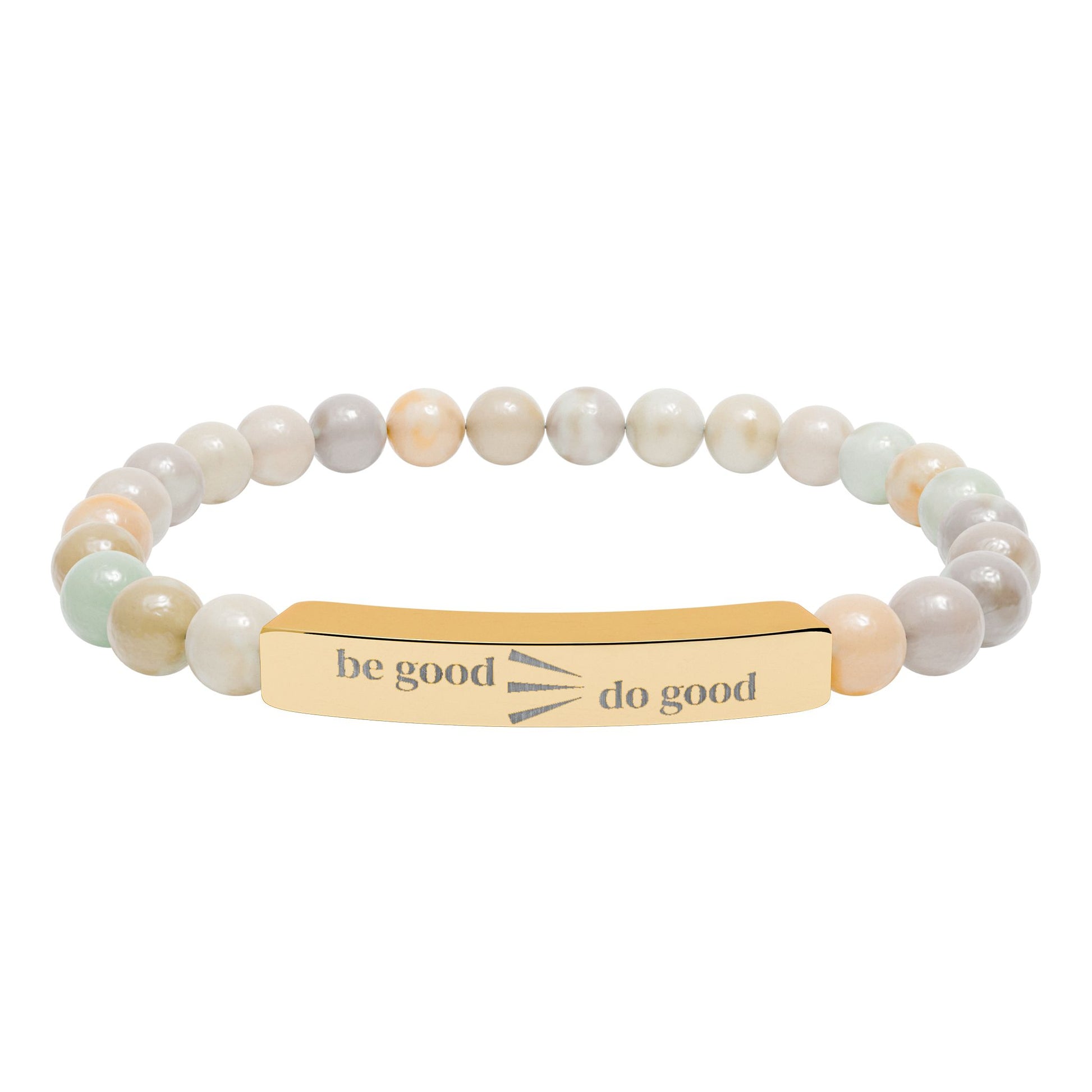 Engraved Natural Stone Stretch Bracelet — Personalized Bar Bead Bracelet