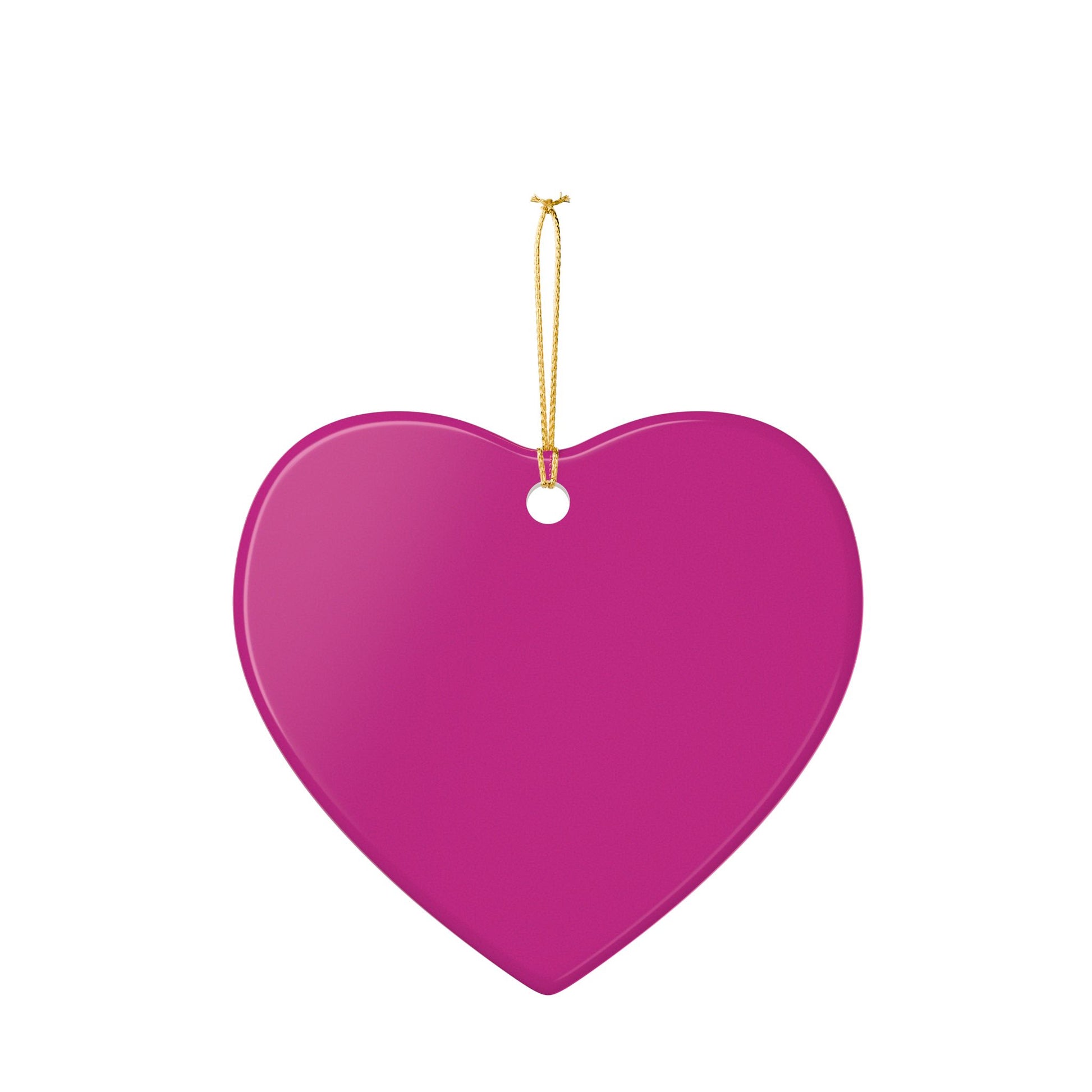 A heart-shaped ceramic ornament that holds a quiet, tender moment. Smooth glossy white ceramic frames a soft photographic print on both sides — a gentle portrait of connection that reads like a whispered memory. The matte-printed image sits subtly against the shine, while a gold string threads through the top so it can hang from a tree, a rearview mirror, or a cozy corner shelf. Small variations in the hole height and the unique UV print give each piece a handmade feeling. It arrives as a single ornament, ready to tuck into a gift box or add to someone’s seasonal display.