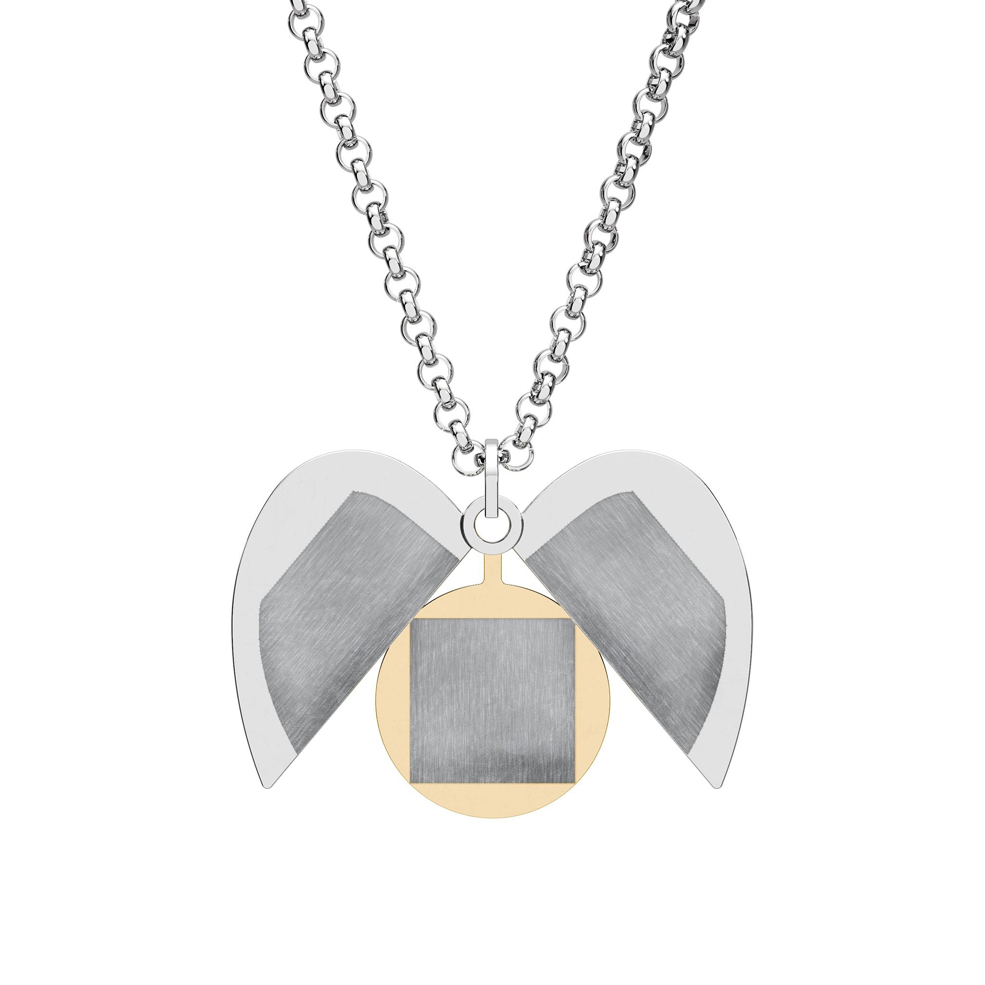 A delicate heart pendant that hides a secret — a tiny, engraved circle held within hinged wings. The outer heart is smooth and polished, opening to reveal a small engraved disc ready for a custom message or subtle symbol. Lightweight and sturdy, the necklace sits close to the collarbone on a short chain that can be extended slightly for comfort. The 316L surgical stainless steel base with 18K gold PVD coating gives the piece a warm, lasting sheen while staying gentle on sensitive skin. Wear it closed for a quiet, elegant look or open it to share a hidden line or memory with someone who knows to look.
