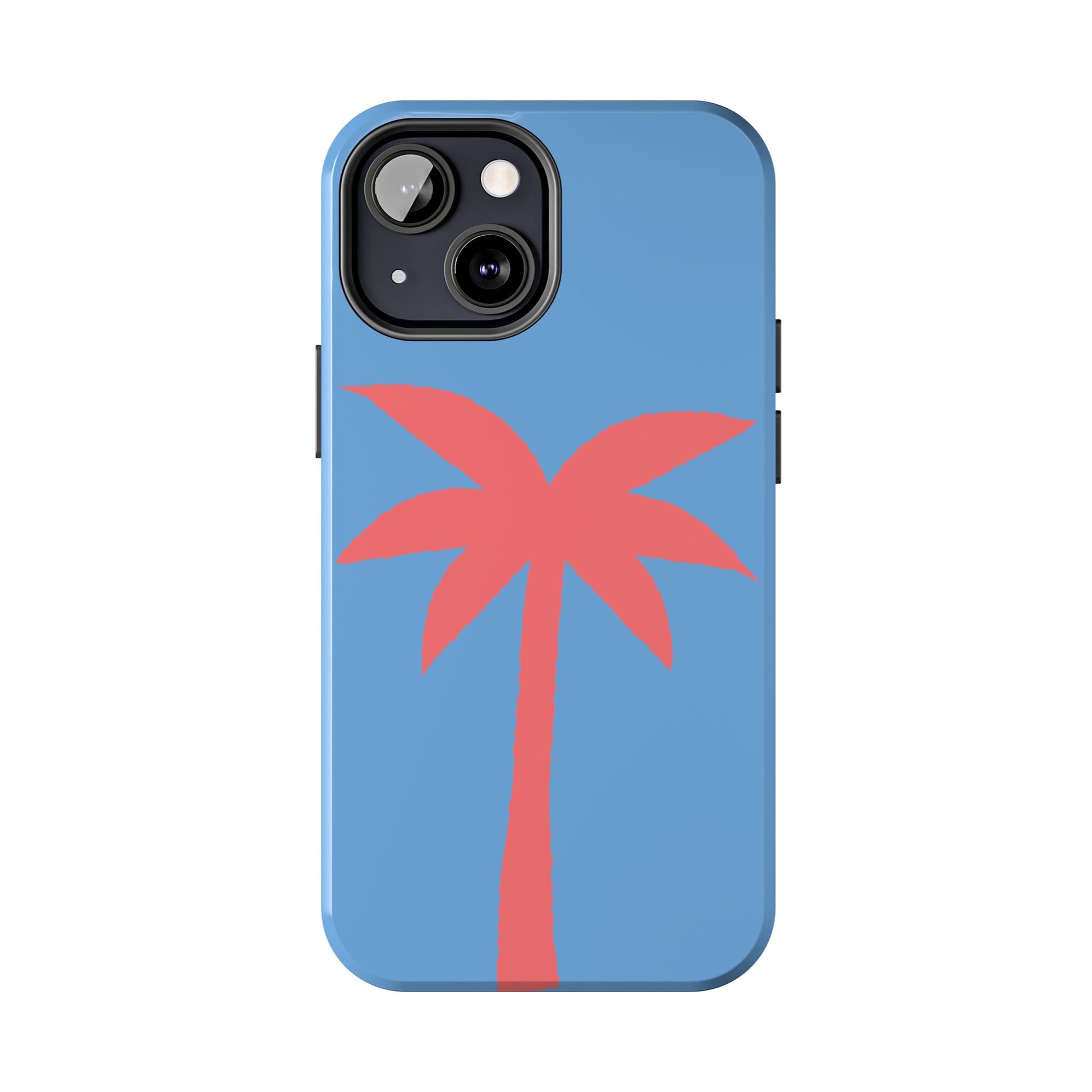 A slim, glossy phone case that brings a laid-back coastal vibe to your daily carry. The smooth blue background and bold coral palm silhouette make a quiet statement — bright without shouting, nostalgic without being kitschy. Built with a two-piece polycarbonate shell and a flexible TPU liner, it hugs your phone while cushioning knocks and drops. The raised bezel keeps the screen off rough surfaces, and the UV-protected print stays true even after sun-soaked days. Lightweight and wireless-charging friendly, it slips easily into pockets and beach bags so your phone looks and feels ready for wherever the tide takes you.